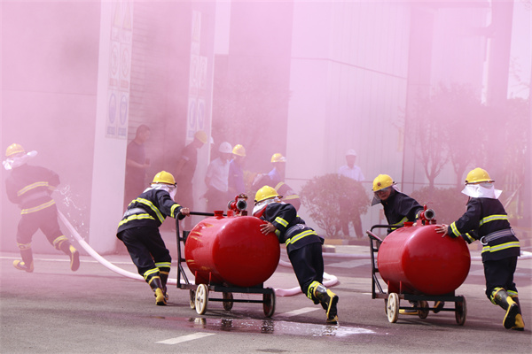 “請各小組就位。”隨著現場總指揮顧峰一聲令下,各應急隊伍聞令而動,勢如破雷,聯動應急演練正式開始。演練模擬甲醇罐車泄漏自燃進行應急處置,火勢引燃罐區,一名操作員輕度燒傷昏迷,從事發第一時間啟動響應程序到開展自救,從事故升級請求外部支援到政企聯動全面開展救援,各行動組分秒必爭、有條不紊,密切配合。地面,十余位曾獲“三等功”榮譽的消防指戰員“逆行”火災一線,耐高溫消防機器人零距離偵察、零距離降溫、零距離滅火、零距離堅守,抗洪搶險排澇車、大噸位水罐消防車快速排澇、穩定供水、“救”在眼前。天空,舉高噴射消防車精確打擊著火點、全面壓制火勢火頭。最終在多兵種聯合作戰,各單位密切配合下現場火情完全撲滅、環境指標恢復正常、污染危害全面消除、應急響應順利終止。