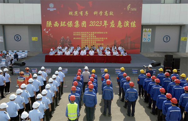 大美蒲城山清水秀,將相故里演練礪兵。為進一步強化安全生產責任意識,檢驗應急協同聯動機制,提升企業與地方聯合處置突發事故應急救援能力水平,6月29日,陜西環保集團聯合蒲城縣人民政府、渭南經濟技術開發區管委會在三秦環保股份公司下屬德昌公司舉辦以“規范有序 科學高效”為主題的2023年火災聯動應急演練。陜西環保集團黨委書記、董事長郝軍亮,黨委副書記、董事、總經理顧峰,蒲城縣縣長薛斌、副縣長王華中,渭南經濟技術開發區管委會主任史小鵬出席。陜西環保集團副總經理李釗主持。