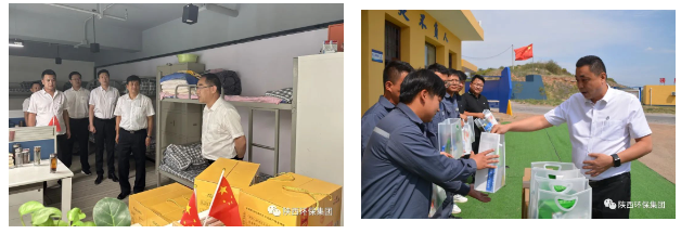 驕陽似火,酷暑難當。各位帶隊領導先后前往綠色能源公司、水環境公司、三秦環保股份公司等11家二級企業所屬的14個項目點進行慰問,包含污水處理、固廢處理、生產運維等重點項目和鄉村振興駐村點,將450份慰問品送到一線職工和駐村干部手中,為高溫作業的職工送去實打實的關愛。