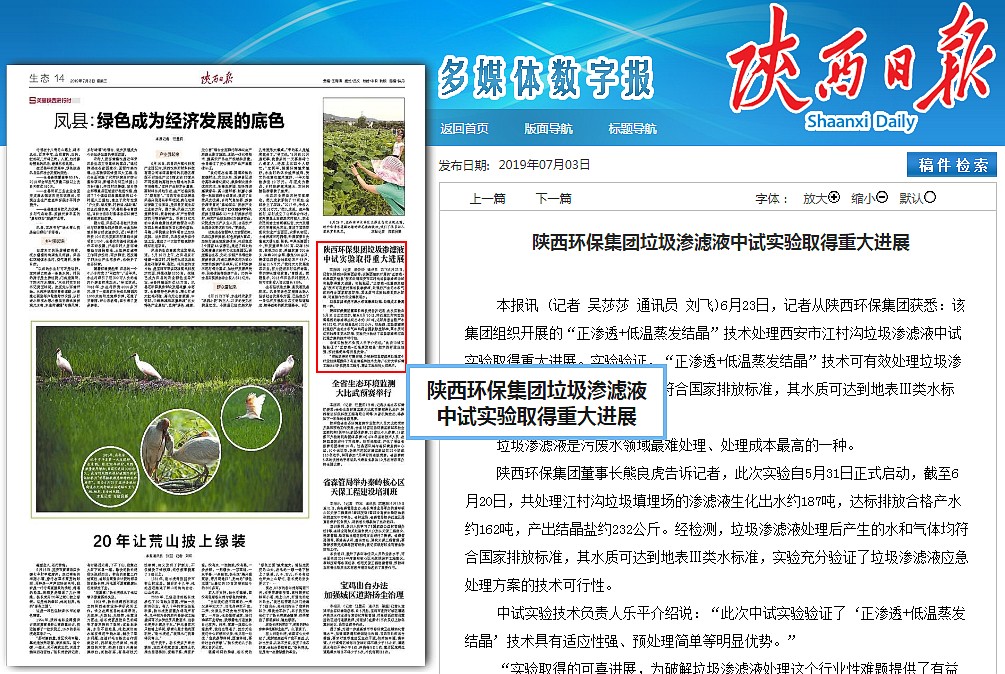 陜西環(huán)保集團(tuán)董事長(zhǎng)熊良虎告訴記者,此次實(shí)驗(yàn)自5月31日正式啟動(dòng),截至6月20日,共處理江村溝垃圾填埋場(chǎng)的滲濾液生化出水約187噸,達(dá)標(biāo)排放合格產(chǎn)水約162噸,產(chǎn)出結(jié)晶鹽約232公斤。經(jīng)檢測(cè),垃圾滲濾液處理后產(chǎn)生的水和氣體均符合國(guó)家排放標(biāo)準(zhǔn),其水質(zhì)可達(dá)到地表Ⅲ類水標(biāo)準(zhǔn),實(shí)驗(yàn)充分驗(yàn)證了垃圾滲濾液應(yīng)急處理方案的技術(shù)可行性。