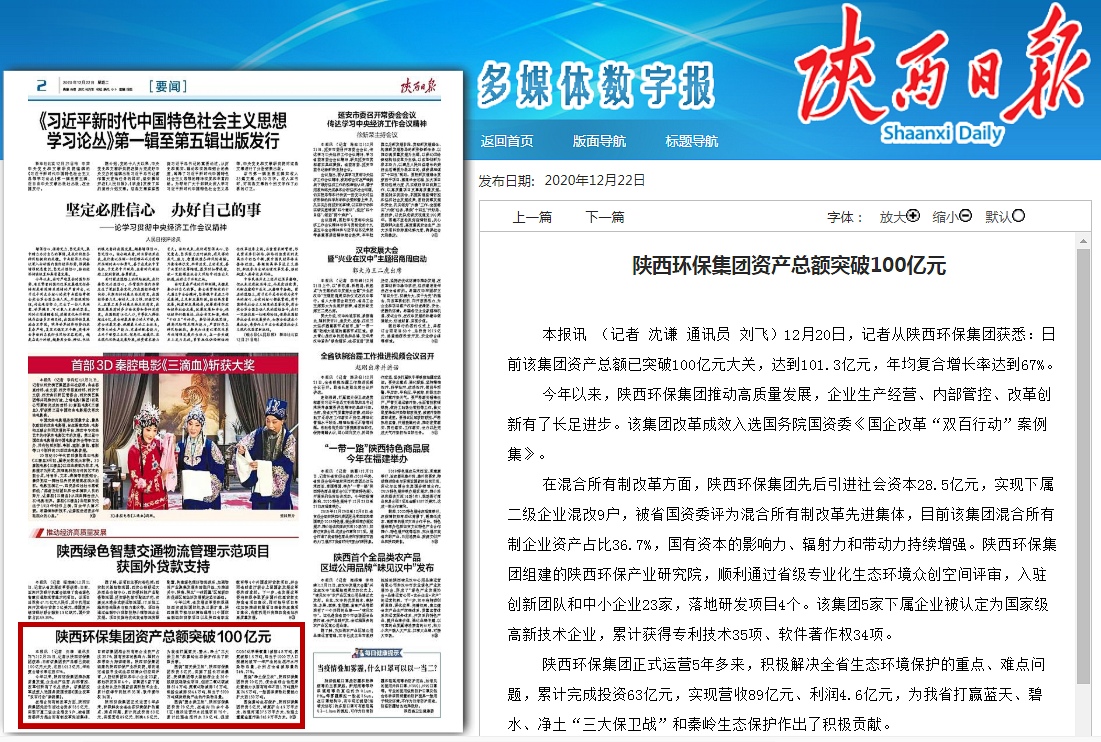 陜西環(huán)保集團資產(chǎn)總額突破100億元