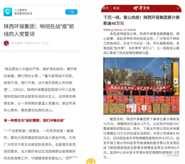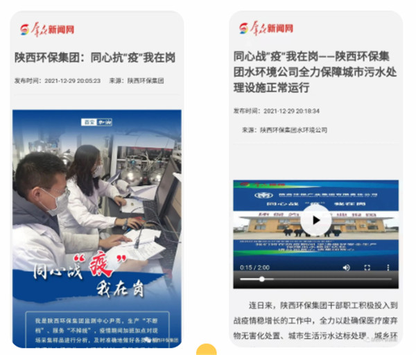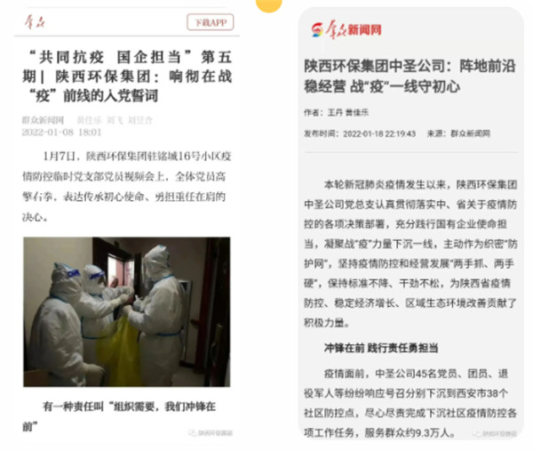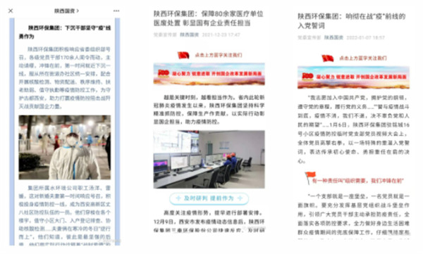 2022年1月1日、11日、12日,學(xué)習(xí)強(qiáng)國對陜西環(huán)保集團(tuán)沖鋒在一線的志愿者進(jìn)行報道。