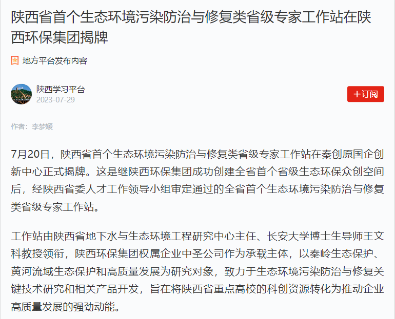 7月29日,學(xué)習(xí)強(qiáng)國(guó)平臺(tái)以《陜西省首個(gè)生態(tài)環(huán)境污染防治與修復(fù)類省級(jí)專家工作站在陜西環(huán)保集團(tuán)揭牌》為題,對(duì)陜西環(huán)保集團(tuán)成功創(chuàng)建省級(jí)專家工作站等工作開(kāi)展情況進(jìn)行了報(bào)道,現(xiàn)刊載如下,以饗讀者。